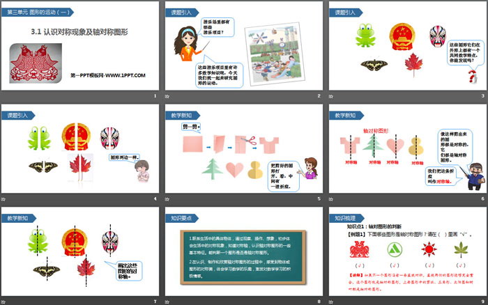 关键词:人教版二年级下册数学PPT课件免费下载,认识对称现象及轴对称图形PPT下载,图形的运动PPT下载,.PPT格式;