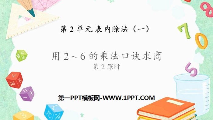 关键词:人教版二年级下册数学PPT课件免费下载,用2-6的乘法口诀求商PPT下载,表内除法PPT下载,.PPT格式;