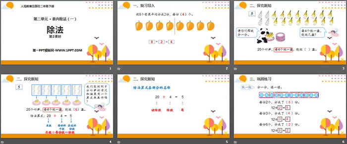 关键词:人教版二年级下册数学PPT课件免费下载,除法PPT下载,表内除法PPT下载,.PPT格式;