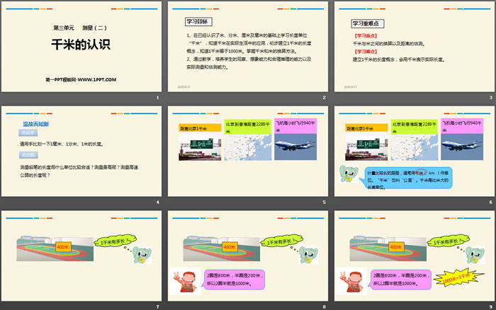 关键词:人教版三年级上册数学PPT课件免费下载,千米的认识PPT下载,测量PPT下载,.PPT格式;