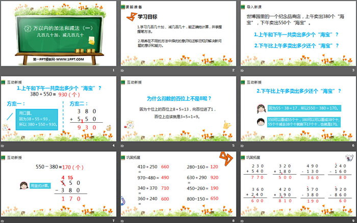 关键词:人教版三年级上册数学PPT课件免费下载,几百几十加减几百几十PPT下载,万以内加法和减法PPT下载,.PPT格式;