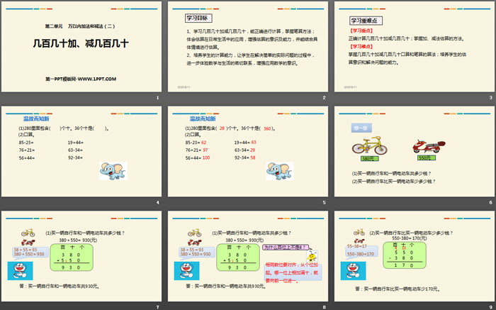 关键词:人教版三年级上册数学PPT课件免费下载,几百几十加减几百几十PPT下载,万以内加法和减法PPT下载,.PPT格式;