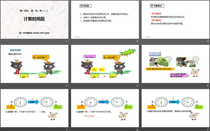 关键词:人教版三年级上册数学PPT课件免费下载,计算时间段PPT下载,时分秒PPT下载,.PPT格式;