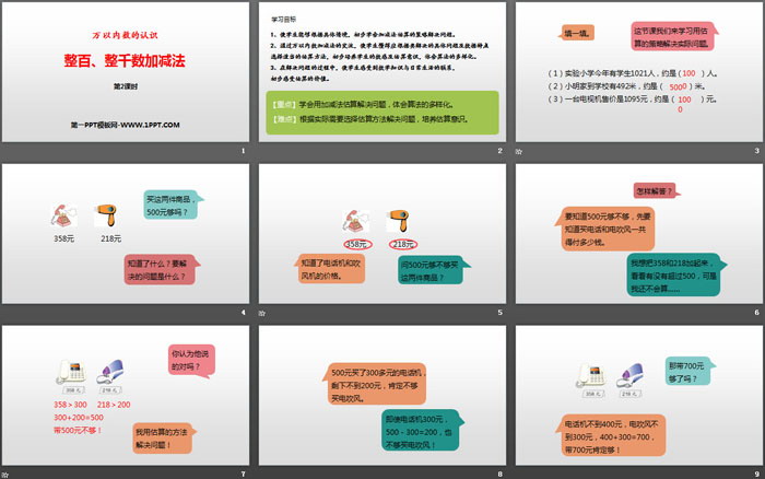 关键词:人教版二年级下册数学PPT课件免费下载,整百整千数加减法PPT下载,万以内数的认识PPT下载,.PPT格式;
