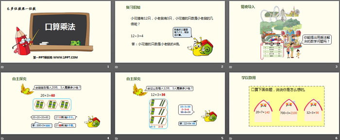 关键词:人教版三年级上册数学PPT课件免费下载,口算乘法PPT下载,多位数乘一位数PPT下载,.PPT格式;