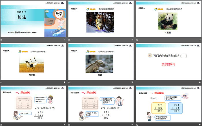 关键词:人教版三年级上册数学PPT课件免费下载,加法PPT下载,万以内的加法和减法PPT下载,.PPT格式;