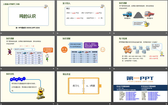 关键词:人教版三年级上册数学PPT课件免费下载,吨的认识PPT下载,测量PPT下载,.PPT格式;
