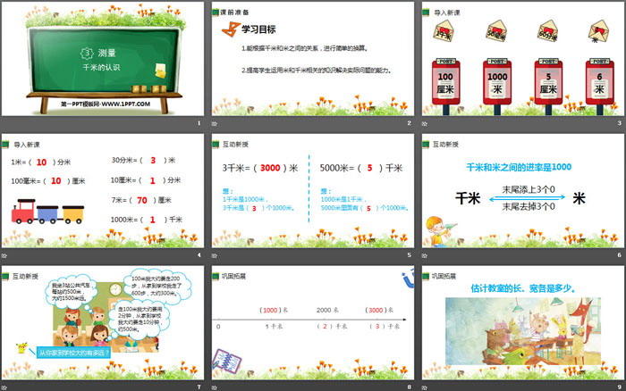 关键词:人教版三年级上册数学PPT课件免费下载,千米的认识PPT下载,测量PPT下载,.PPT格式;