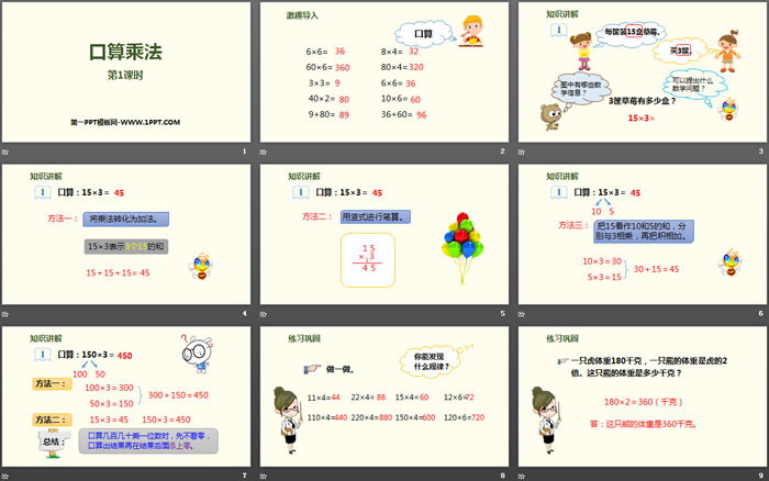 关键词:人教版三年级下册数学PPT课件免费下载,口算乘法PPT下载,两位数乘两位数PPT下载,.PPT格式;