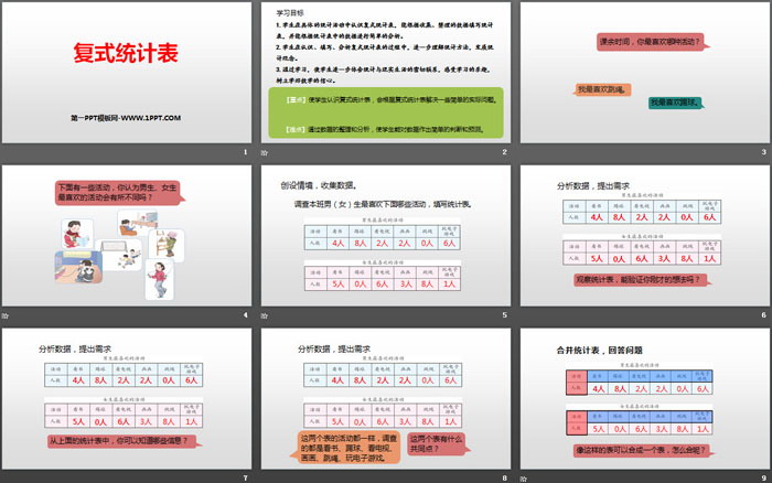 关键词:人教版三年级下册数学PPT课件免费下载,复式统计表PPT下载,.PPT格式;