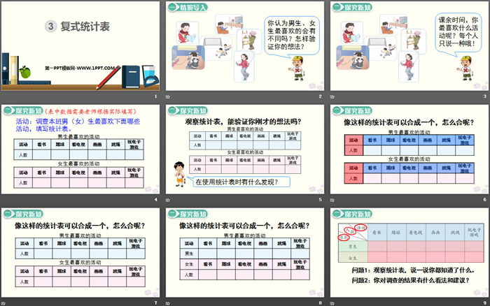 关键词:人教版三年级下册数学PPT课件免费下载,复式统计表PPT下载,.PPT格式;