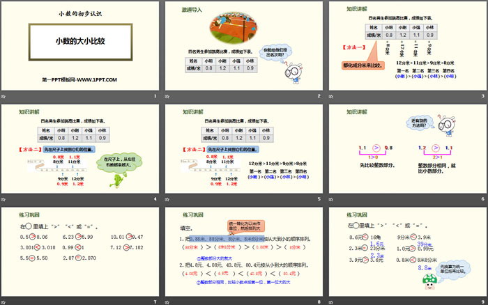 关键词:人教版三年级下册数学PPT课件免费下载,小数的大小比较PPT下载,小数的初步认识PPT下载,.PPT格式;