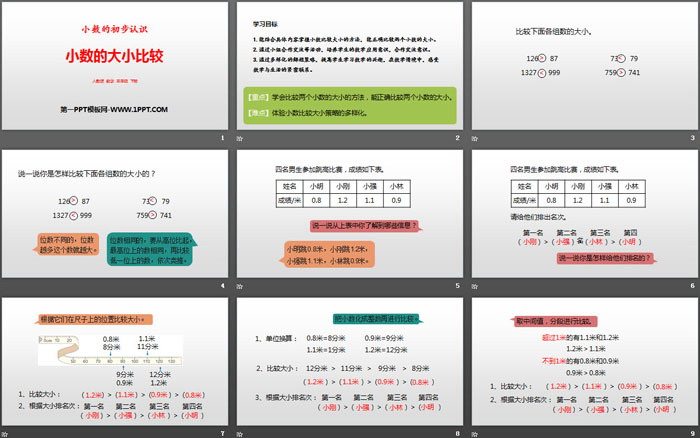 关键词:人教版三年级下册数学PPT课件免费下载,小数的大小比较PPT下载,小数的初步认识PPT下载,.PPT格式;
