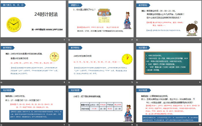 关键词:人教版三年级下册数学PPT课件免费下载,24时计时法PPT下载,年月日PPT下载,.PPT格式;