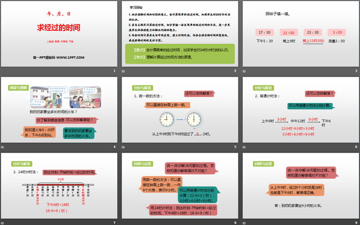 关键词:人教版三年级下册数学PPT课件免费下载,求经过的时间PPT下载,年月日PPT下载,.PPT格式;