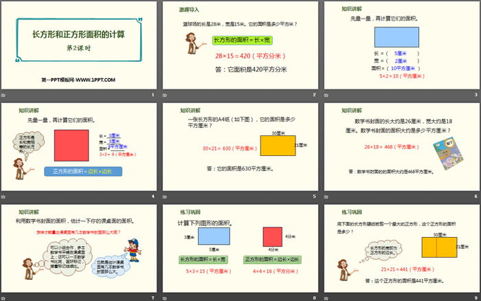 《长方形、正方形面积的计算》面积PPT课件(第2课时)
