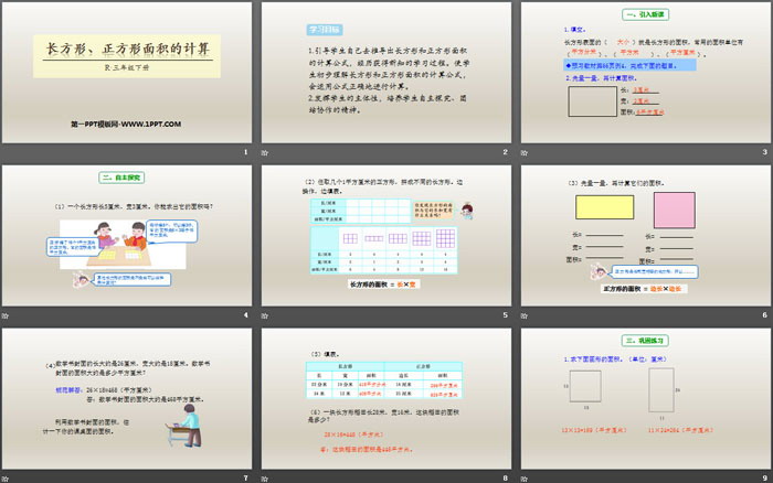长方形正方形面积的计算PPT,第三部分内容:自主探究