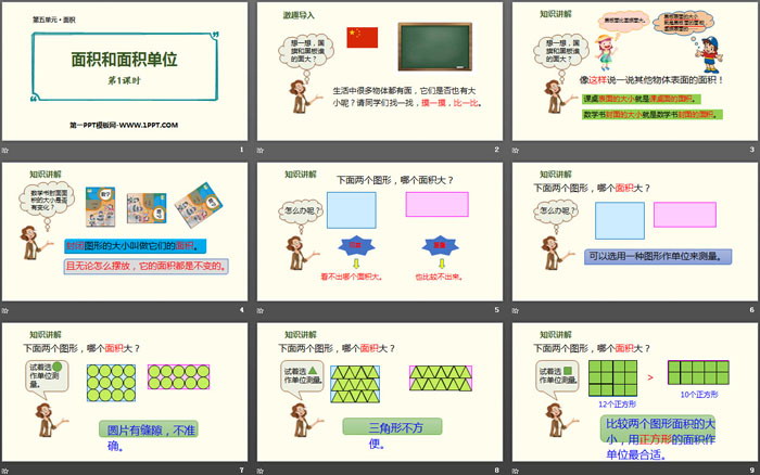 关键词:人教版三年级下册数学PPT课件免费下载,面积和面积单位PPT下载,面积PPT下载,.PPT格式;