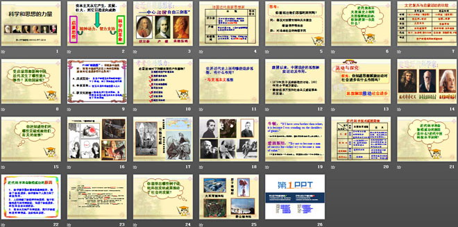 关键词:璀璨的近代文化教学课件,科学和思想的力量教学课件,人教版九年级上册历史PPT课件下载,九年级历史幻灯片课件下载,璀璨的近代文化PPT课件下载,科学和思想的力量PPT课件下载,.PPT格式;