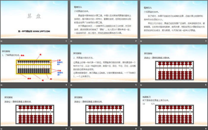 关键词:人教版四年级上册数学PPT课件免费下载,算盘PPT下载,大数的认识PPT下载,.PPT格式;