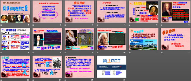 关键词:璀璨的近代文化教学课件,科学和思想的力量教学课件,人教版九年级上册历史PPT课件下载,九年级历史幻灯片课件下载,璀璨的近代文化PPT课件下载,科学和思想的力量PPT课件下载,.PPT格式;