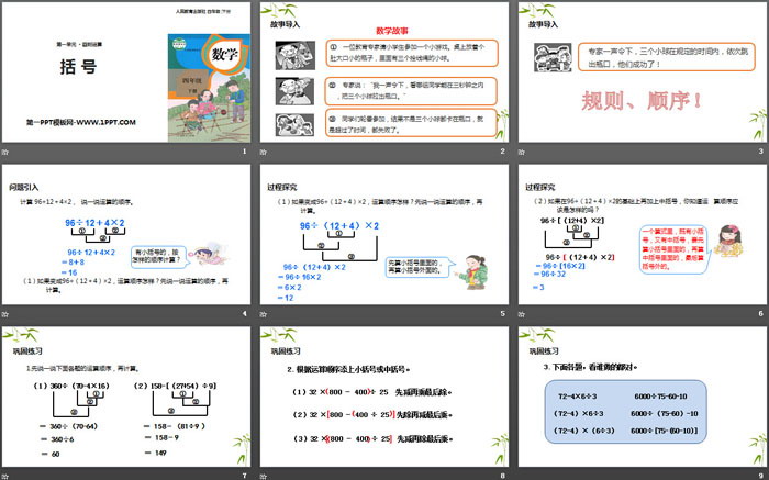 关键词:人教版四年级下册数学PPT课件免费下载,括号PPT下载,四则运算PPT下载,.PPT格式;