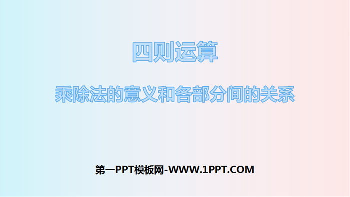 关键词:人教版四年级下册数学PPT课件免费下载,乘除法的意义和各部分间的关系PPT下载,四则运算PPT下载,.PPT格式;