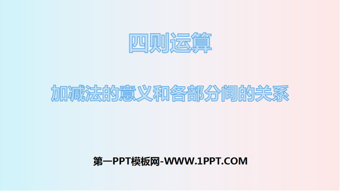 关键词:人教版四年级下册数学PPT课件免费下载,加减法的意义和各部分间的关系PPT下载,四则运算PPT下载,.PPT格式;