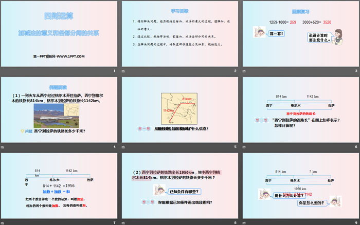 (2)西宁到拉萨的铁路全长1956km,其中西宁到格尔木长814km。格尔木到拉萨的铁路长多少千米?