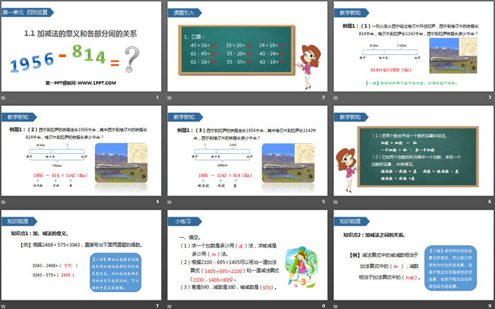 关键词:人教版四年级下册数学PPT课件免费下载,加减法的意义和各部分间的关系PPT下载,四则运算PPT下载,.PPT格式;