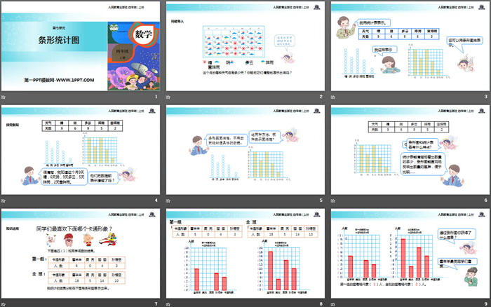 关键词:人教版四年级上册数学PPT课件免费下载,条形统计图PPT下载,.PPT格式;
