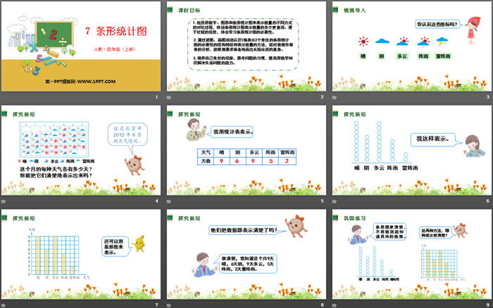 关键词:人教版四年级上册数学PPT课件免费下载,条形统计图PPT下载,.PPT格式;