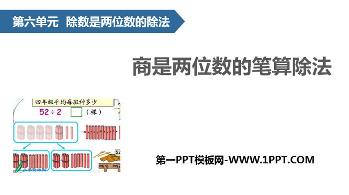 关键词:人教版四年级上册数学PPT课件免费下载,商是两位数的笔算除法PPT下载,除数是两位数的除法PPT下载,.PPT格式;