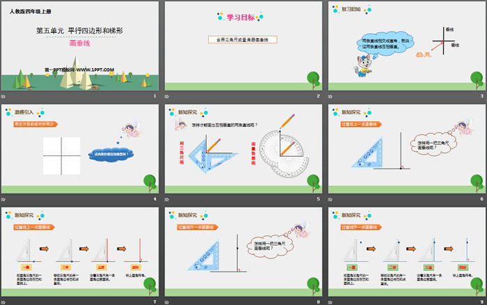 关键词:人教版四年级上册数学PPT课件免费下载,画垂线PPT下载,平行四边形和梯形PPT下载,.PPT格式;