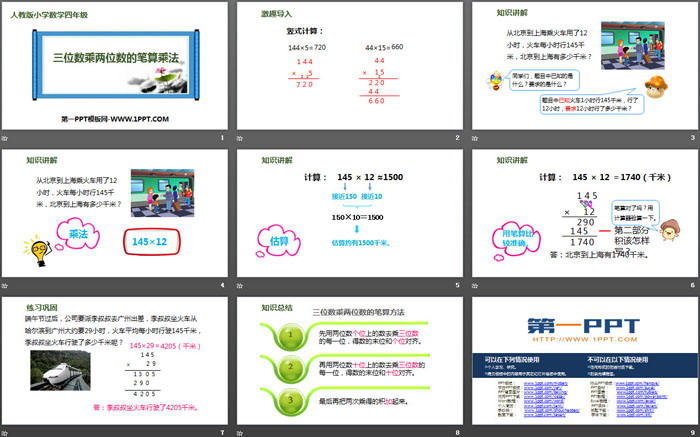 关键词:人教版四年级上册数学PPT课件免费下载,三位数乘两位数的笔算乘法PPT下载,三位数乘两位数PPT下载,.PPT格式;