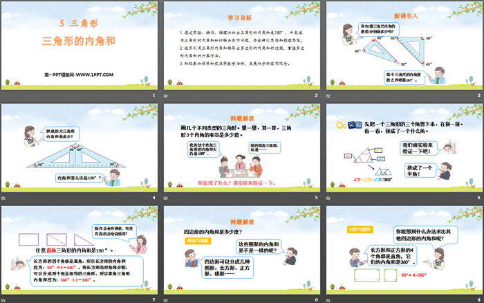 关键词:人教版四年级下册数学PPT课件免费下载,三角形的内角和PPT下载,三角形PPT下载,.PPT格式;