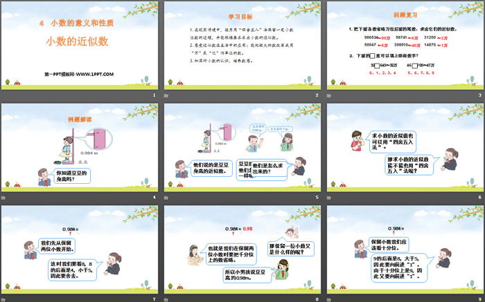 关键词:人教版四年级下册数学PPT课件免费下载,小数的近似数PPT下载,小数的意义和性质PPT下载,.PPT格式;