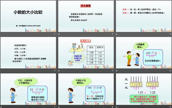 关键词:人教版四年级下册数学PPT课件免费下载,小数的大小比较PPT下载,小数的意义和性质PPT下载,.PPT格式;