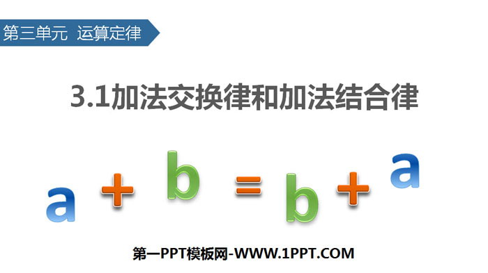 关键词:人教版四年级下册数学PPT课件免费下载,加法交换律和加法结合律PPT下载,运算定律PPT下载,.PPT格式;