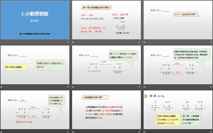 关键词:人教版五年级上册数学PPT课件免费下载,小数乘整数PPT下载,小数乘法PPT下载,.PPT格式;