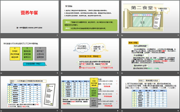 关键词:人教版四年级下册数学PPT课件免费下载,营养午餐PPT下载,.PPT格式;