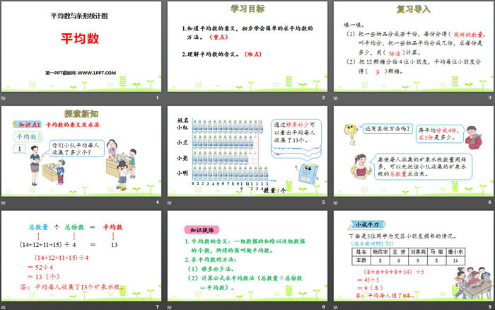 关键词:人教版四年级下册数学PPT课件免费下载,平均数PPT下载,平均数与条形统计图PPT下载,.PPT格式;