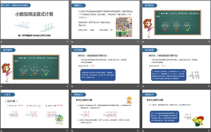 关键词:人教版四年级下册数学PPT课件免费下载,小数加减法竖式计算PPT下载,小数的加法和减法PPT下载,.PPT格式;