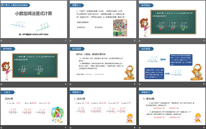 关键词:人教版四年级下册数学PPT课件免费下载,小数加减法竖式计算PPT下载,小数的加法和减法PPT下载,.PPT格式;