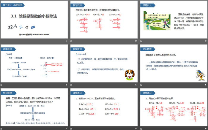 关键词:人教版五年级上册数学PPT课件免费下载,除数是整数的小数除法PPT下载,小数除法PPT下载,.PPT格式;