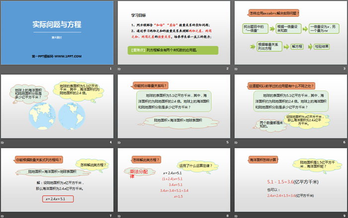 关键词:人教版五年级上册数学PPT课件免费下载,实际问题与方程PPT下载,简易方程PPT下载,.PPT格式;