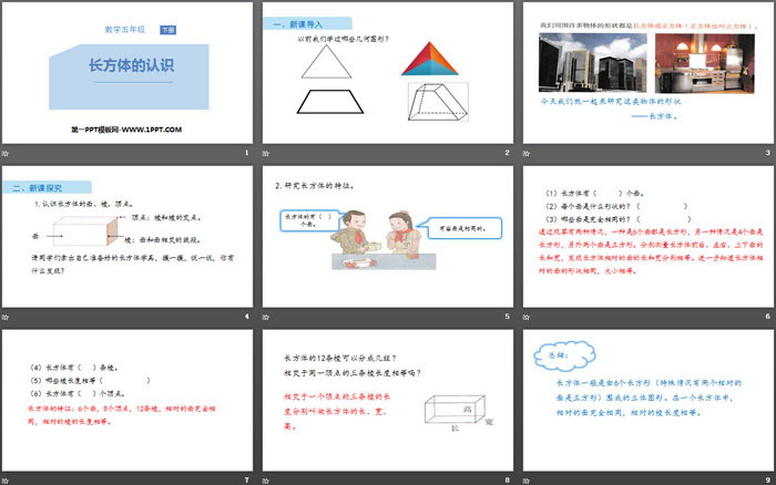 长方体的认识PPT,第四部分内容:课堂小结