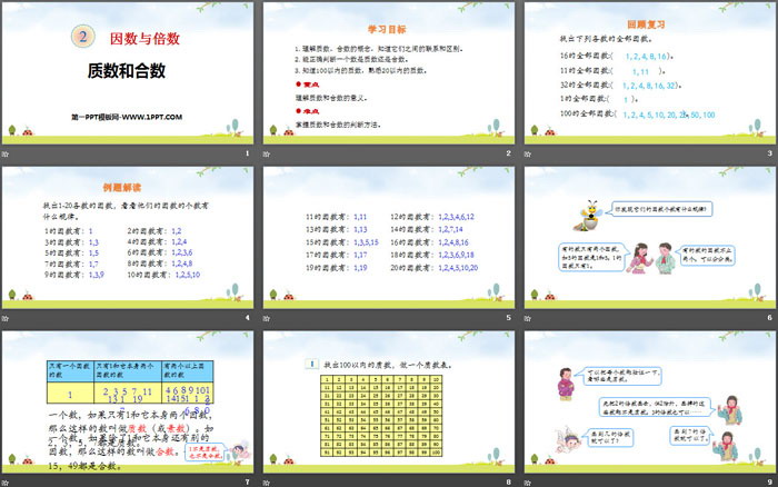 关键词:人教版五年级下册数学PPT课件免费下载,质数和合数PPT下载,因数与倍数PPT下载,.PPT格式;