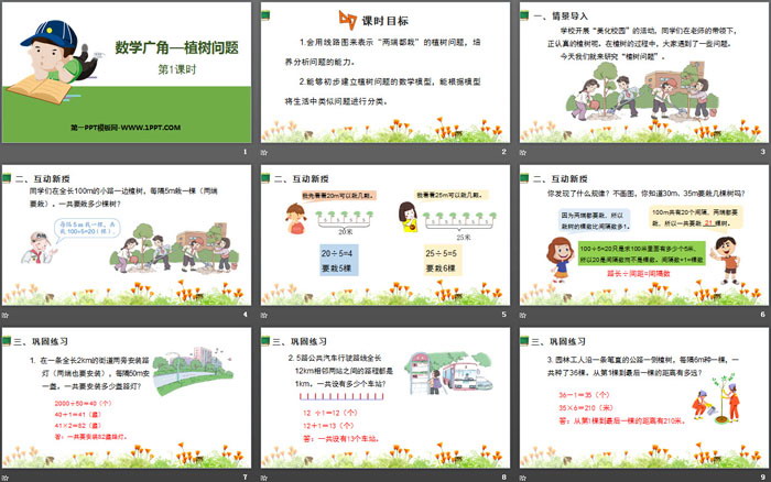 关键词:人教版五年级上册数学PPT课件免费下载,植树问题PPT下载,数学广角PPT下载,.PPT格式;