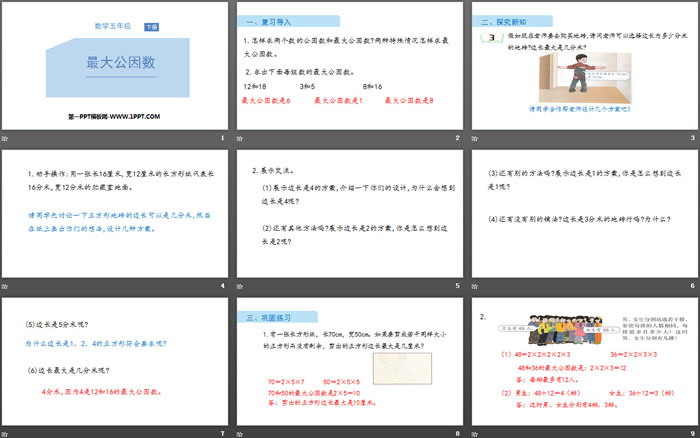 关键词:人教版五年级下册数学PPT课件免费下载,最大公因数PPT下载,分数的意义和性质PPT下载,.PPT格式;